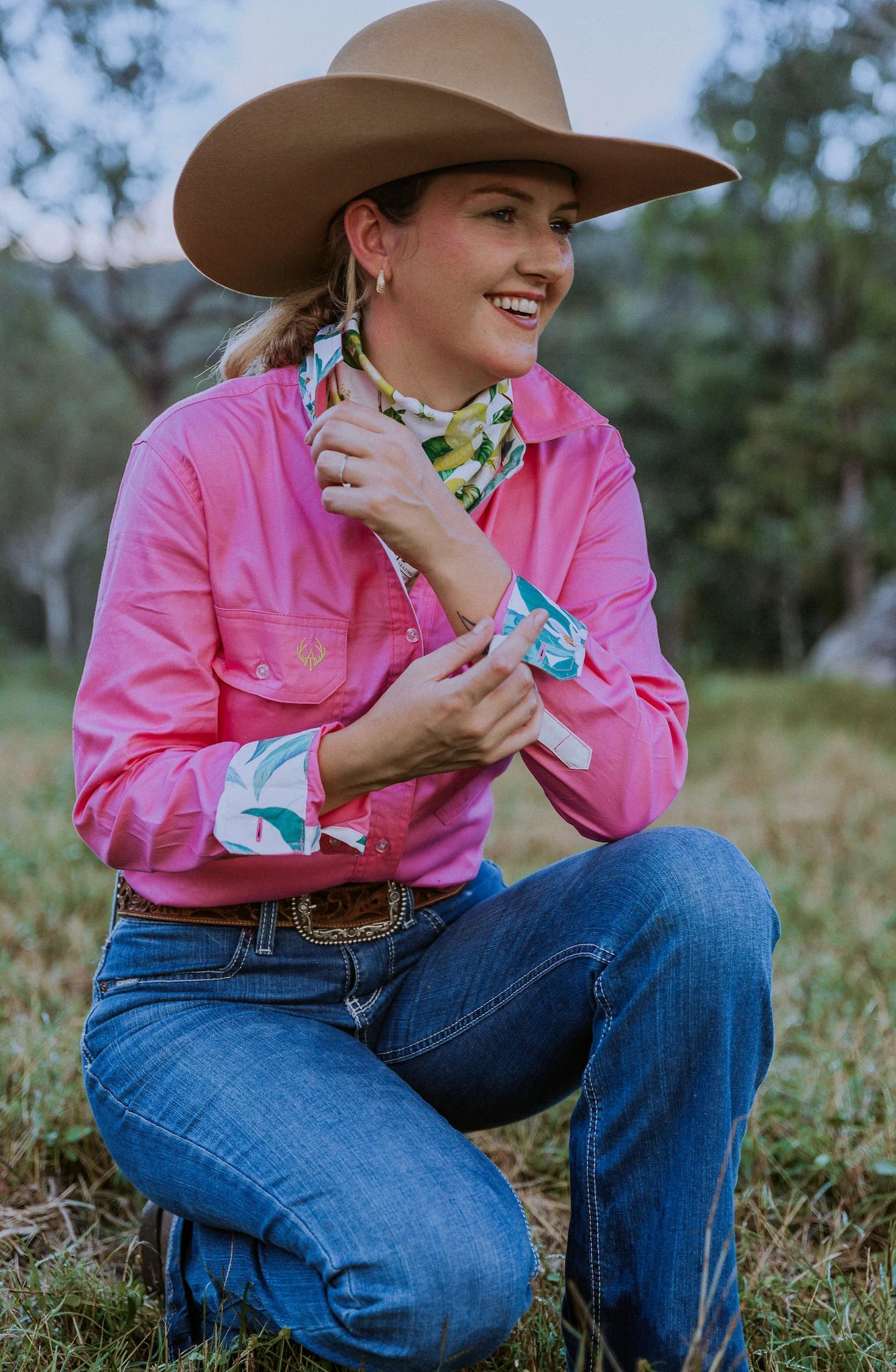 This isn't just your standard pink shirt. Our Holly shirt has quickly become a wardrobe staple with an eye-catching lemon collar and cuff print, large double chest pockets, and a relaxed fit that's long in the body and arms. Tuck her into a pair of jeans or shorts and off you go!