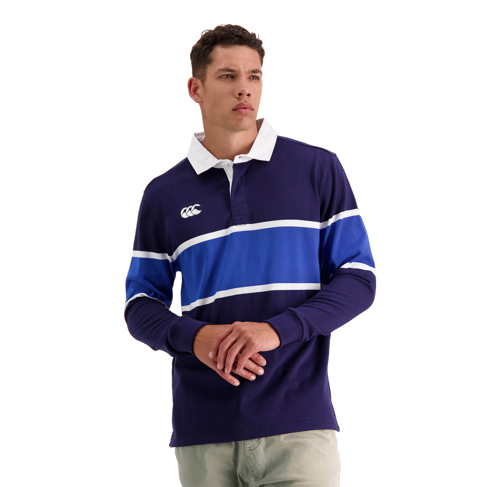 ShareCanterbury Mens Chest Band Stripe Rugby Jersey - E03 PEACOAT