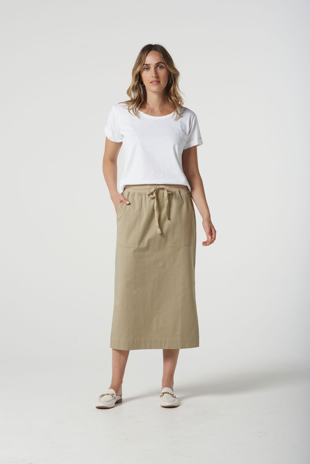 Goondiwindi Cotton - Long Rib Waist Casual Skirt - Beige