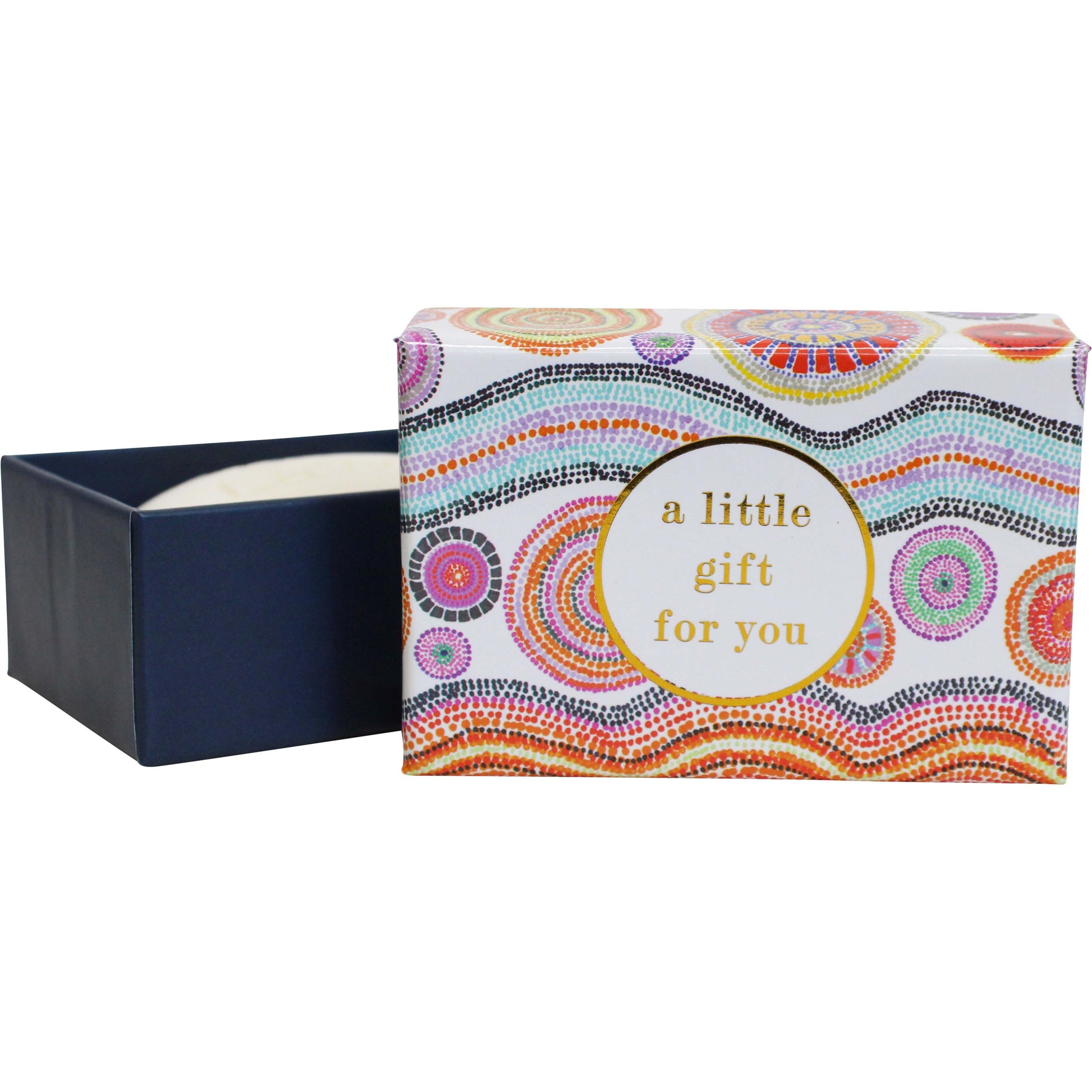 Soap Gift For You Dreamtime features a breath taking burst of colours that oozes a magical charm. The tropical-inspired package has an exciting mix of blue, green, yellow, and white that mimics a rainbow. It is excellent as a bespoke gift inscribed with a personalised message written in cursive gold typography, "a little gift for you."
