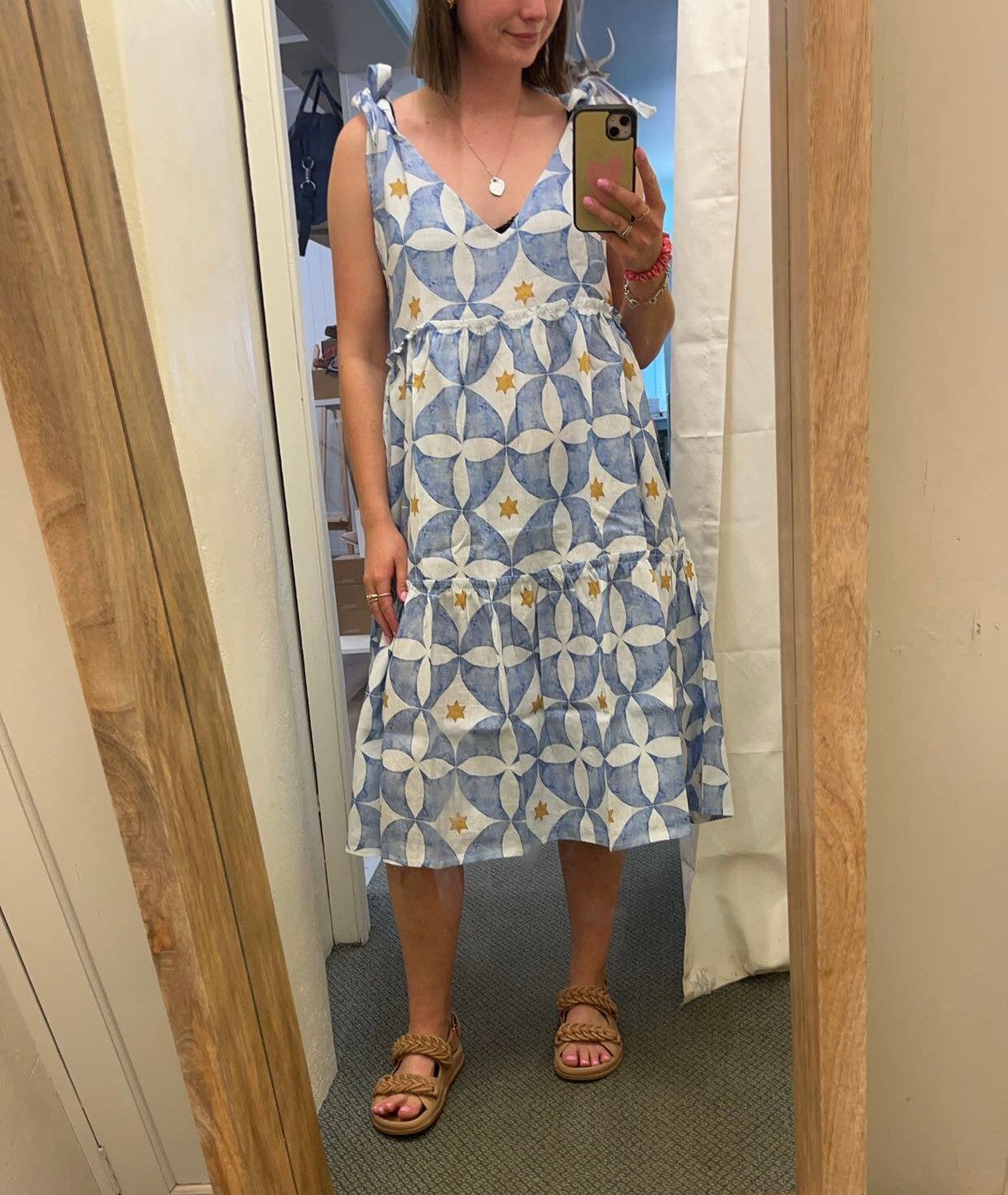 ShareLJC Ostuni Dress - Printed Linen - Azure