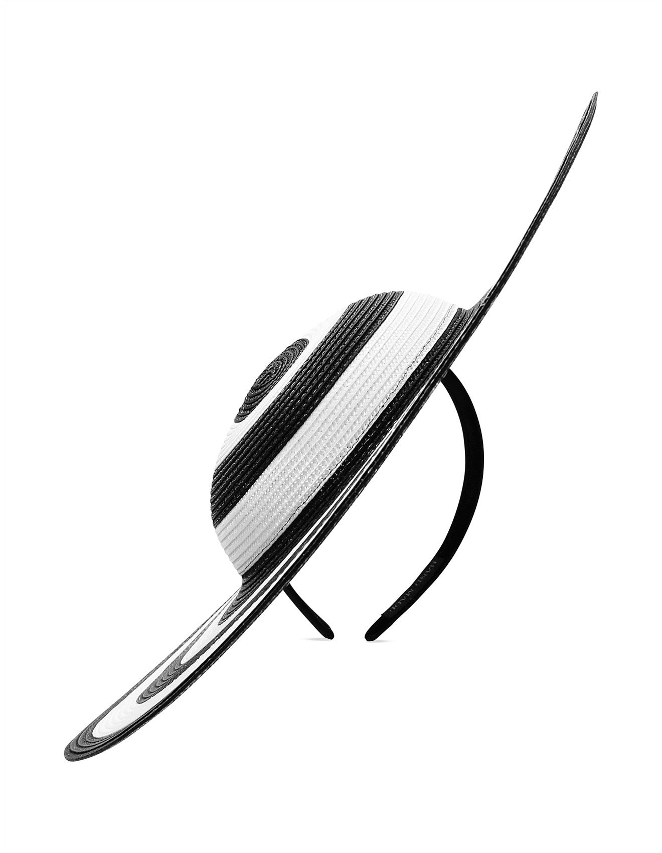 The Morgan & Taylor Atlas Plate Hat in Black & White features contrasting stripes for a chic and dramatic look. The bold pattern and elegant shape can easily be styled for a statement look. The fitted headband ensures a comfortable fit for all-day wear.