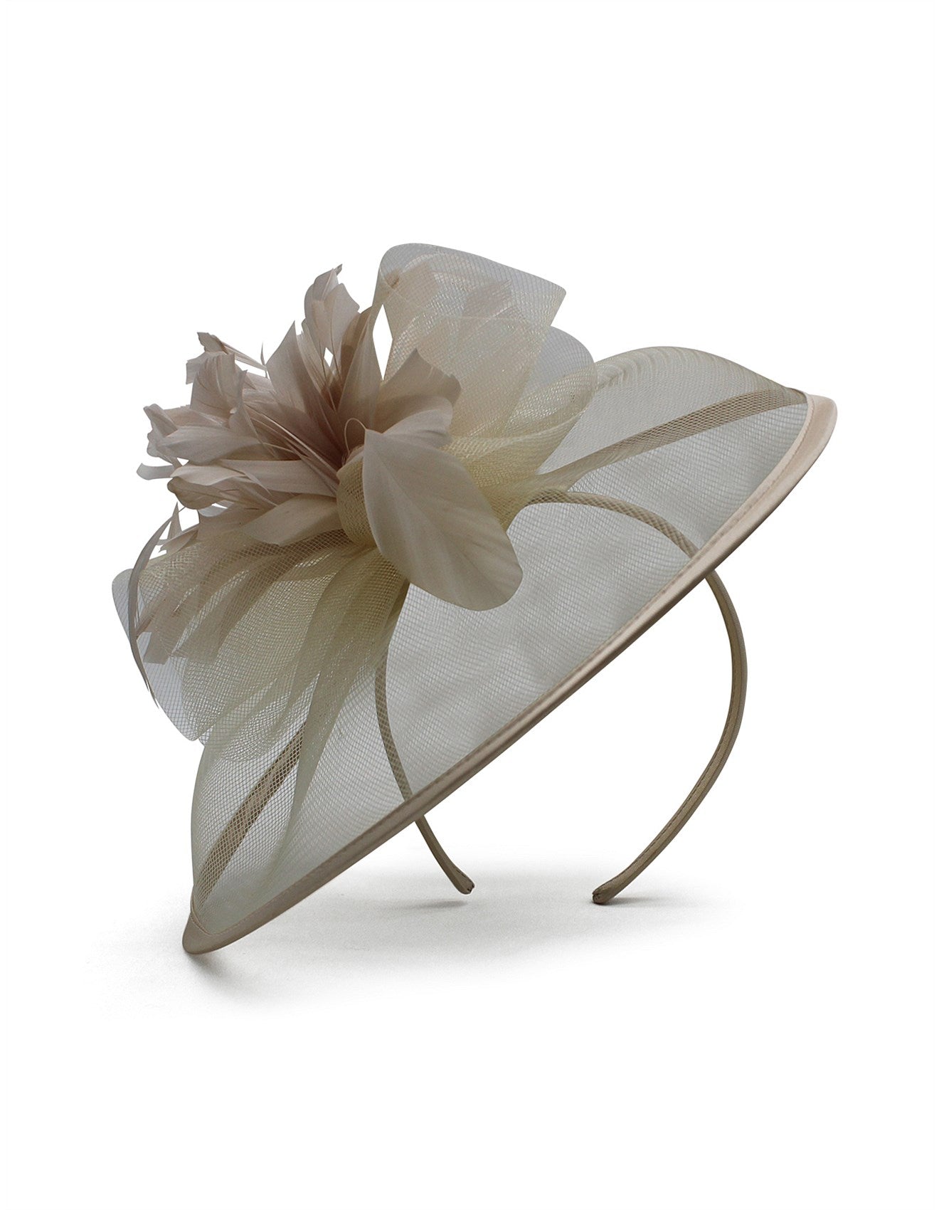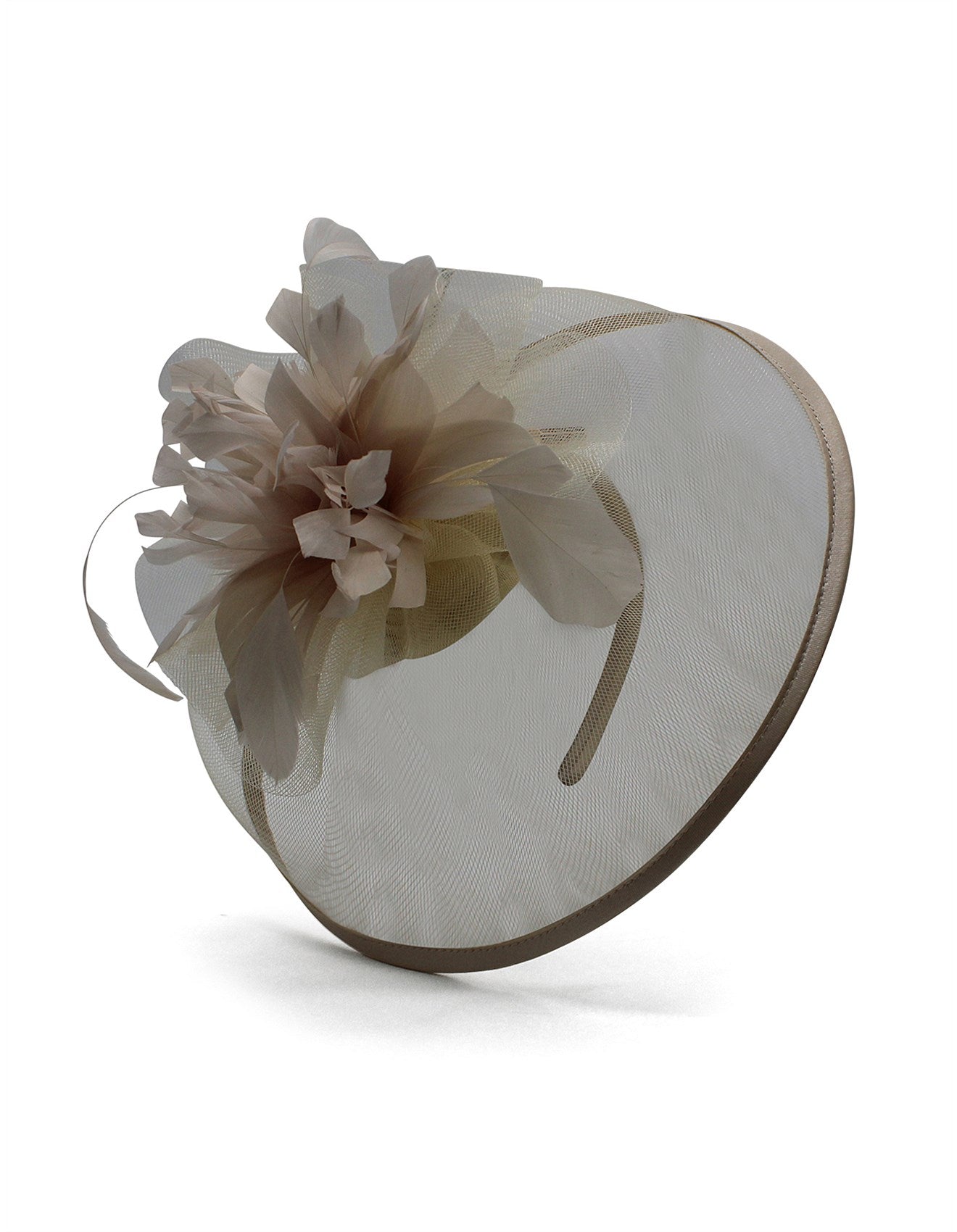 - Crafted classic fascinator shape placed across a band
