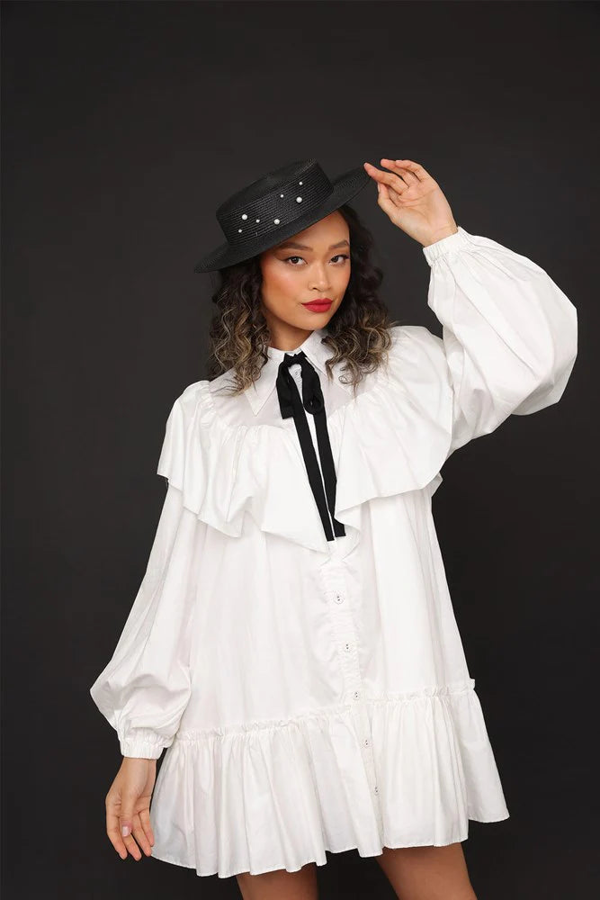 - Classic boater shape with an elegant pearl beading on the crown